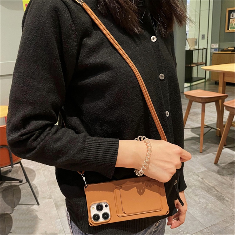 Para IPhone 15 16 Pro Max Carteira Porta-Cartões Crossbody Colar Cordão Capa Marrom Macia 14 13 12 11 14 Plus XS XR X 8