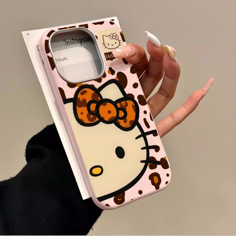 Para IPhone 16 15 14 13 12 11 Pro Max X XR XS 7 8 Plus Bonito Outono Leopardo Padrão HelloKitty Caso De Telefone Capa Ma