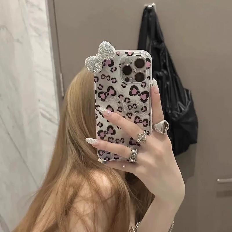 Para iPhone 16 15 14 13 12 11 Pro MAX X XR XS 7 8 Plus Legal E Bonito Menina Coração Rosa Prata Leopardo Impressão Diama