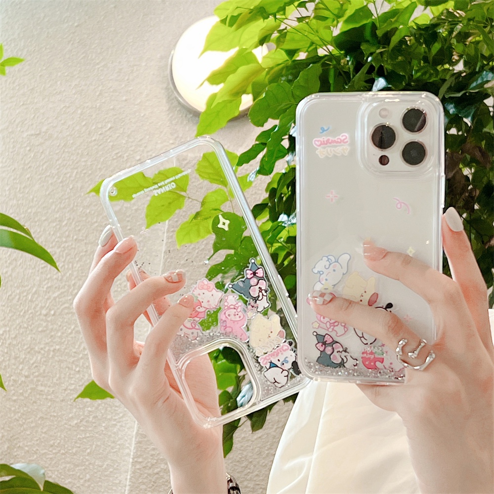Para iPhone17 16 Glitter Areia Movediça Sanrio Caso Apple ip 15 14 13 12 11 Pro Max 14 Plus Melodia Kuromi Brilho Líquid