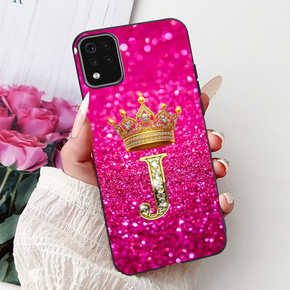 Para LG K42 K52 2020 K420 K520 Moda Coroa Letra Inicial Casal Capa De Telefone (Brasil) Macia De Silicone Preto