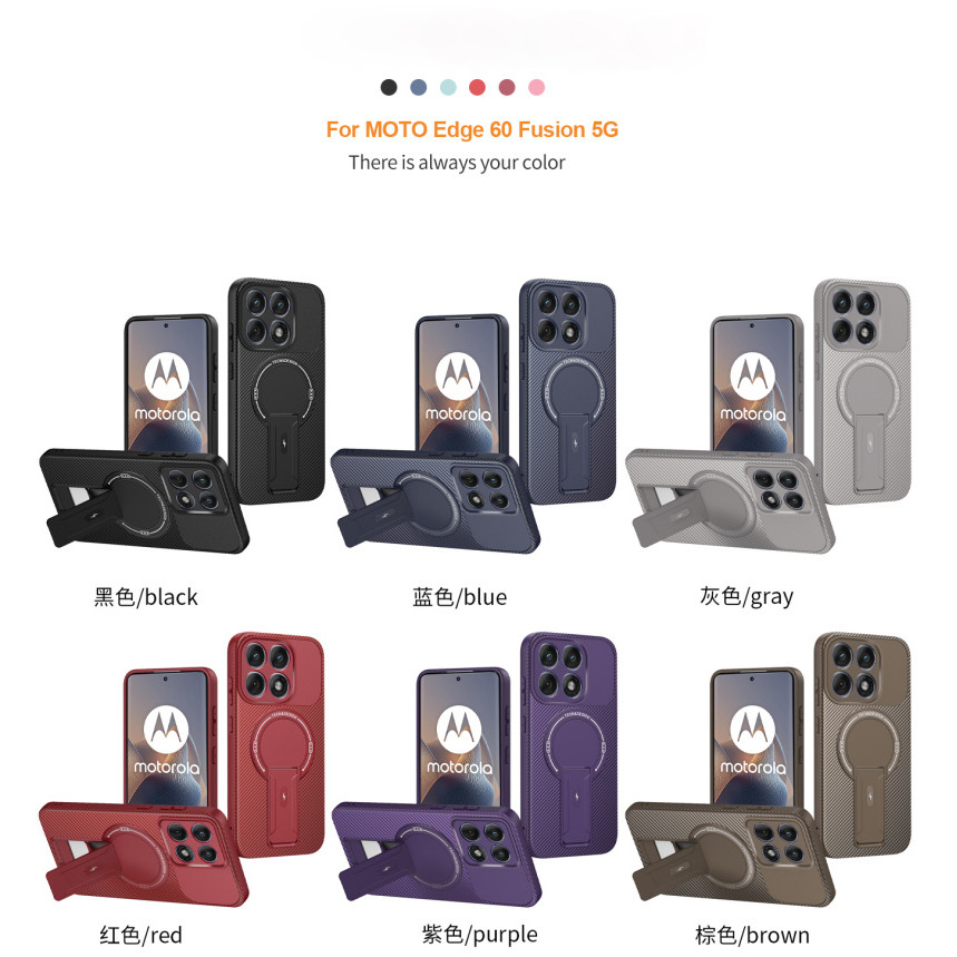 Para Moto Edge 60 Fusion Sem Fio De Carregamento Fibra Carbono TPU Gel Caso , Suporte Magnético Traseiro Pro