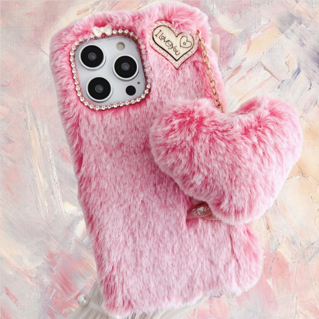 Para Moto G85 G84 G82 G73 G64 G55 G54 G53 G45 G35 G34 G24 G14 G04 Power Rosa Vermelho Peludo Capa De Telefone + Pelúcia