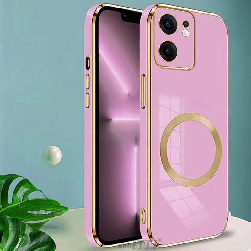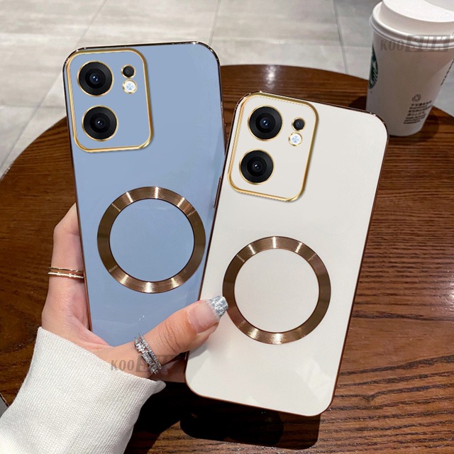 Para OPPO reno 13F 13 Pro 13 F 5G CPH2689 CPH2697 Borda Reta Brilhante Galvanizado Anel Magnético Caso Capa De Telefone