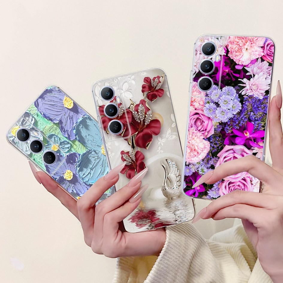 Para Realme C65 4G Caso 2025 Nova Moda Flor Borboleta Silicone Macio Claro TPU De Telefone RealmeC65 RMX3910 C 65 Protet