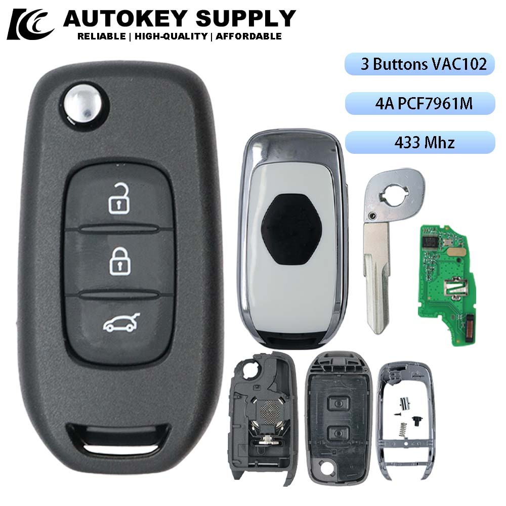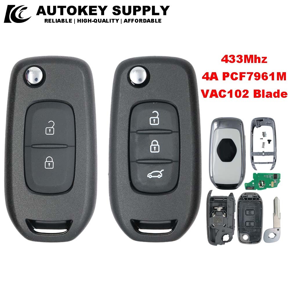 Para Renault 2013-2017 Kadjar Captur Megane3 433MHz PCF7961M 4A Chip 2/3 Botões VAC102 Lâmina Chave Remota