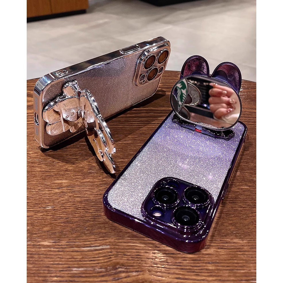 Para Samsung S20 S21 S23 S24 S25 FE S22 Plus Ultra A55 A56 A54 A15 A16 A17 A05S A06 A07 Bling Pequeno Coelho Suporte Cap