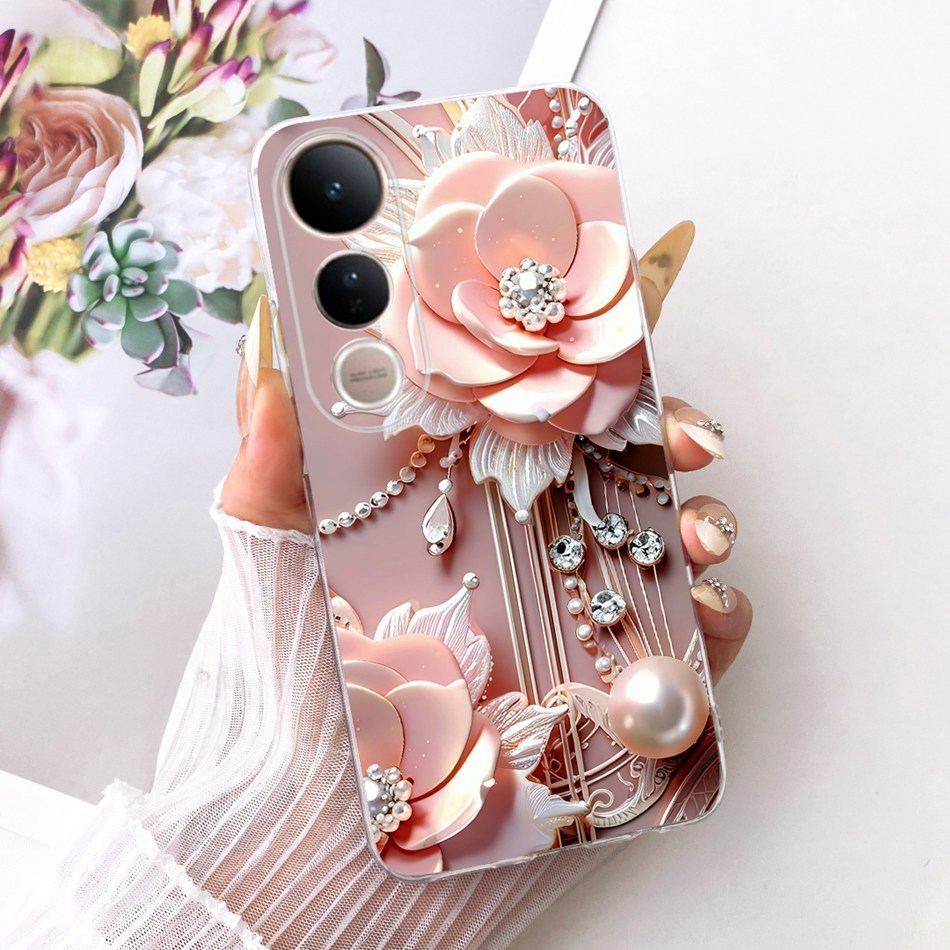 Para Vivo V50 Lite V50 V2427 V2441 Novo Elegante Floral Gato Pintura Embalagem VivoV50 V50Lite 5G Silicone Macio TPU Cas