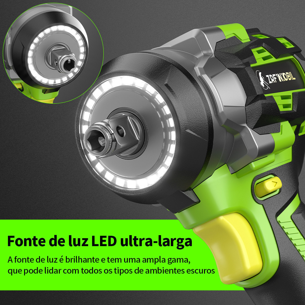 Parafusadeira Chave de Impacto Sem Fio Profissional com 2 Baterias 21V Carregador Acessórios