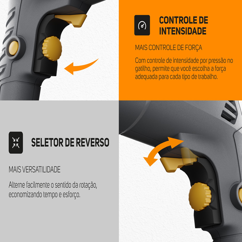 Parafusadeira e Furadeira WF 700FE com Impacto Seletor Reverso 700W e Botão Trava Wap