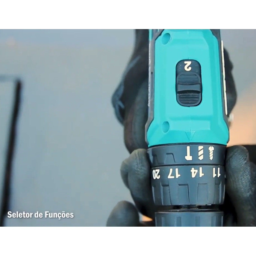 FURADEIRA PARAFUSADEIRA DE IMPACTO MAKITA, MODELO HP333DWYE COM 2 BATERIAS, CARREGADOR E KIT BROCAS X-LINE 33 PEÇAS FURADEIRA PARAFUSADEIRA DE IMPACTO HP333DWYE: CARACTERÍSTICAS Projetada com a tecnologia CXT. 20 níveis de torque. Seletor de funções. 2 velocidades mecânicas. Velocidade variável. Freio instantâneo. Rotação reversível. Mandril de aperto rápido. Iluminação de trabalho. ESPECIFICAÇÕES Capacidades - Aço: 10mm - Madeira: 21mm - Alvenaria: 8mm Rotações por minuto - Alta: 0 - 1.700 - Baixa: 0 - 450 Impactos por minuto - Alta: 0 - 25.500 - Baixa: 0 - 6.750 Torque - Junta rígida: 30 N.m - Junta flexível: 14 N.m Dimensões (C x L x A): 193 x 66 x 212mm Peso: 1.1kg Bateria: 12V Emissão de vibrações: 13 m/s² Incerteza K: 1.5 m/s² ITENS QUE ACOMPANHAM - 2 baterias 12V 1.5 Ah; - Carregador; - Maleta; - Kit Brocas X-line 33 Peças.