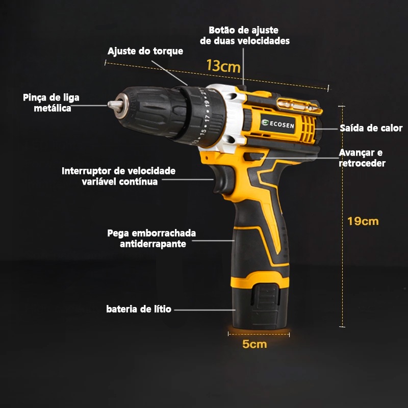 Parafusadeira/Furadeira 12V 3900MAH 110V-220v 2 12V baterias