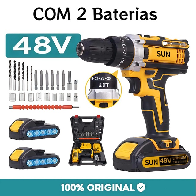 | Parafusadeira Furadeira 48V 1/2 Bateria Completo Acessórios 3 fun... este produto | R$ 128,99 | 77% | 4.9/5 | 451 |
