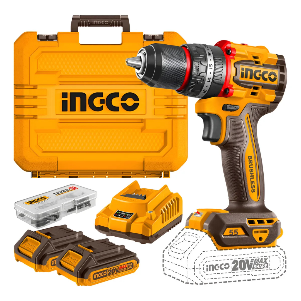 Parafusadeira/furadeira 55Nm 1/2'' + 2x Baterias 20V 2ah - Cidli201452-9 - Ingco Brasil