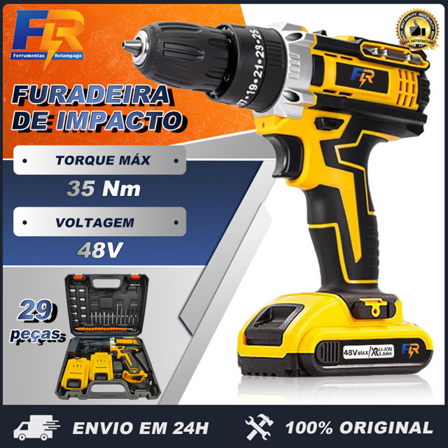 | Parafusadeira Furadeira de Elétrica Sem Fio Impacto 48V Bateria 3 f... este produto | R$ 134,41 | 60% | 4.9/5 | 2.4 mil |