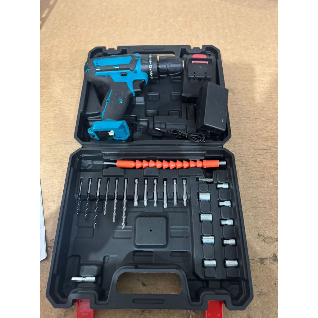 Parafusadeira Furadeira De Impacto Sem Fio 21v 1 Baterias Potência, praticidade e versatilidade em uma única ferramenta. A Furadeira Parafusadeira de Impacto Sem Fio 21V é ideal para trabalhos profissionais e domésticos, oferecendo alto desempenho na perfuração e fixação em diversos materiais como madeira, metal e plástico. Com design ergonômico, empunhadura emborrachada Soft Grip e estrutura compacta, ela proporciona conforto mesmo em longos períodos de uso e facilidade no manuseio em áreas de difícil acesso. A tecnologia de bateria de íons de lítio 21V garante maior autonomia e liberdade sem depender de fios. Diferenciais e Vantagens: Sem fio: Mais mobilidade para trabalhos em qualquer lugar. Mandril de aperto rápido (10mm): Troca fácil e rápida dos acessórios. Torque ajustável (17 + 1 níveis): Precisão para diferentes tipos de parafusamento. 2 velocidades mecânicas (0-400 / 0-1400 RPM): Controle total para perfuração ou parafusamento. Impacto e reversão: Ideal para diferentes superfícies e remoção de parafusos. Bateria extra de 1300mAh: Prolonga o tempo de trabalho. Aplicações Recomendadas: Profissionais da construção civil e marcenaria Trabalhos de bricolagem (DIY) Reparos e manutenções residenciais Montagem de móveis e instalações em geral Itens Inclusos: 01 Furadeira Parafusadeira 02 Baterias de lítio recarregáveis 01 Carregador Bivolt 01 Maleta organizadora 06 Brocas para perfuração 06 Bits de parafuso 09 Soquetes 01 Conector de bits 01 Conector de broca 01 Extensor flexível Especificações Técnicas: Mandril: 3/8” (10 mm) – aperto rápido Velocidade sem carga: 0–350/ 0–1300 RPM Torque máximo: 25 Nm Ajuste de torque: 17 + 1 posições Bateria: 21V Reversão de rotação: Sim Peso: 0,860 kg (apenas a Parafusadeira Furadeira) Voltagem: Bivolt automático Pronta para te acompanhar nos mais diversos desafios, essa parafusadeira é o investimento certo para quem busca desempenho, autonomia e eficiência em um só equipamento.