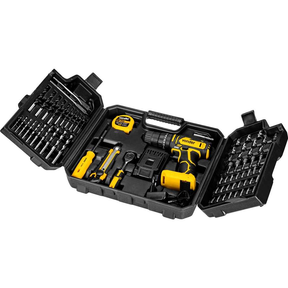 Parafusadeira/Furadeira Com Impacto A Bateria, 20 V, Fonte Bivolt Automático, Com 78 Acessórios, Pfv 078, Vonder Jogo com 78 acessórios, encaixados perfeitamente na maleta, conferindo organização, praticidade e maior vida útil dos acessórios. Possui 1 posição com 18 regulagens de torque para parafusamento e 2 posições para perfuração (com e sem impacto). Conta ainda com LED para melhor visibilidade do local de trabalho, indicador de nível de carga da bateria, cabo com revestimento emborrachado, que proporciona maior conforto ao operador, e bateria de íons de lítio que confere alta eficiência de operação, além de fonte de alimentação bivolt automática com tensão de entrada de 100 V~ - 240 V~. Indicada para soltar e apertar parafusos de até 8 mm de diâmetro e fazer furos em madeiras ou metais na função sem impacto e em concreto na função com impacto. Tempo de carregamento da bateria: 3 a 5 horas. Especificações Técnicas: Modelo: PFV 078 Capacidade do mandril: 3/8" - 10 mm Tipo de mandril: Aperto rápido Bateria: 20 V - 2 Ah - Íons de lítio Tensão de entrada: 100 V~ - 240 V~ - Bivolt automático Tipo de velocidade: Variável (2 velocidades) Sistema de reversão: Sim Rotações por minuto (rpm): 0 - 400/min / 0 - 1.400/min Impactos por minuto (ipm): 0 - 21.000/min Capacidade máxima de perfuração em aço: 10 mm Capacidade máxima de perfuração em madeira: 20 mm Capacidade de furação no concreto/alvenaria: 10 mm Frequência (Hz): 50 Hz / 60 Hz Aceleração transmitida nas mãos - braços do operador - ah: 9,5 m/s² Incerteza da aceleração transmitida nas mãos - braços do operador - k: 1,5 m/s² Segue norma: ABNT NBR IEC 60745-1, ABNT NBR IEC 60745-2-1 e ABNT NBR IEC 60745-2-2 Massa aproximada (peso) (kg): 5,3 kg (com acessórios) Conteúdo da Embalagem: 1 Parafusadeira/furadeira a bateria. Acompanha: 1 maleta, 1 bateria de 20 V, 1 fonte bivolt automática e 78 acessórios, sendo: 2 brocas chatas para madeira (13 mm e 16 mm), 10 brocas para madeira (3 mm, 3,5 mm, 4 mm, 4,5 mm, 5 mm, 6 mm, 7 mm, 8 mm, 9 mm e 10 mm), 10 brocas em aço rápido (3 mm, 3,5 mm, 4 mm, 4,5 mm, 5 mm, 6 mm, 7 mm, 8 mm, 9 mm e 10 mm), 13 soquetes em aço cromo vanádio encaixe 1/4" (4 mm, 4,5 mm, 5 mm, 5,5 mm, 6 mm, 7 mm, 8 mm, 9 mm, 10 mm, 11 mm, 12 mm, 13 mm e 14 mm), 5 soquetes sextavados magnéticos (6 mm, 8 mm, 10 mm, 12 mm e 13 mm), 1 chave catraca 1/4", 8 bits 25 mm philips (2 peças PH0, 2 peças PH1, 2 peças PH2 e 2 peças PH3), 9 bits 25 mm fenda (2 peças SL 3 mm, 2 peças SL 4 mm, 2 peças SL 5 mm, 2 peças SL 6 mm e 1 peça SL 7 mm), 4 bits 25 mm pozidrive (1 peça PZ0, 1 peça PZ1, 1 peça PZ2 e 1 peça PZ3), 6 bits 25 mm hexalobular (T10, T15, T20, T25, T27 e T40), 5 bits 25 mm allen/hexagonal (H2, H3, H4, H5 e H6), 1 soquete magnético encaixe de 1/4", 1 cabo adaptador encaixe 1/4", 1 bit adaptador, 1 Trena 5 metros e 1 estilete.
