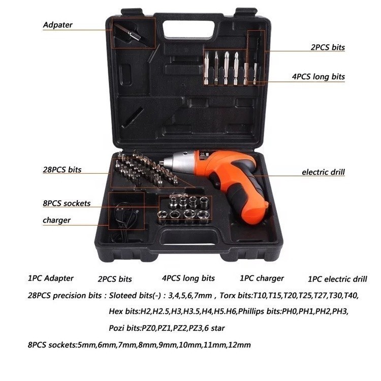 Parafusadeira Furadeira sem Fio Recarregável com Maleta 45 peças