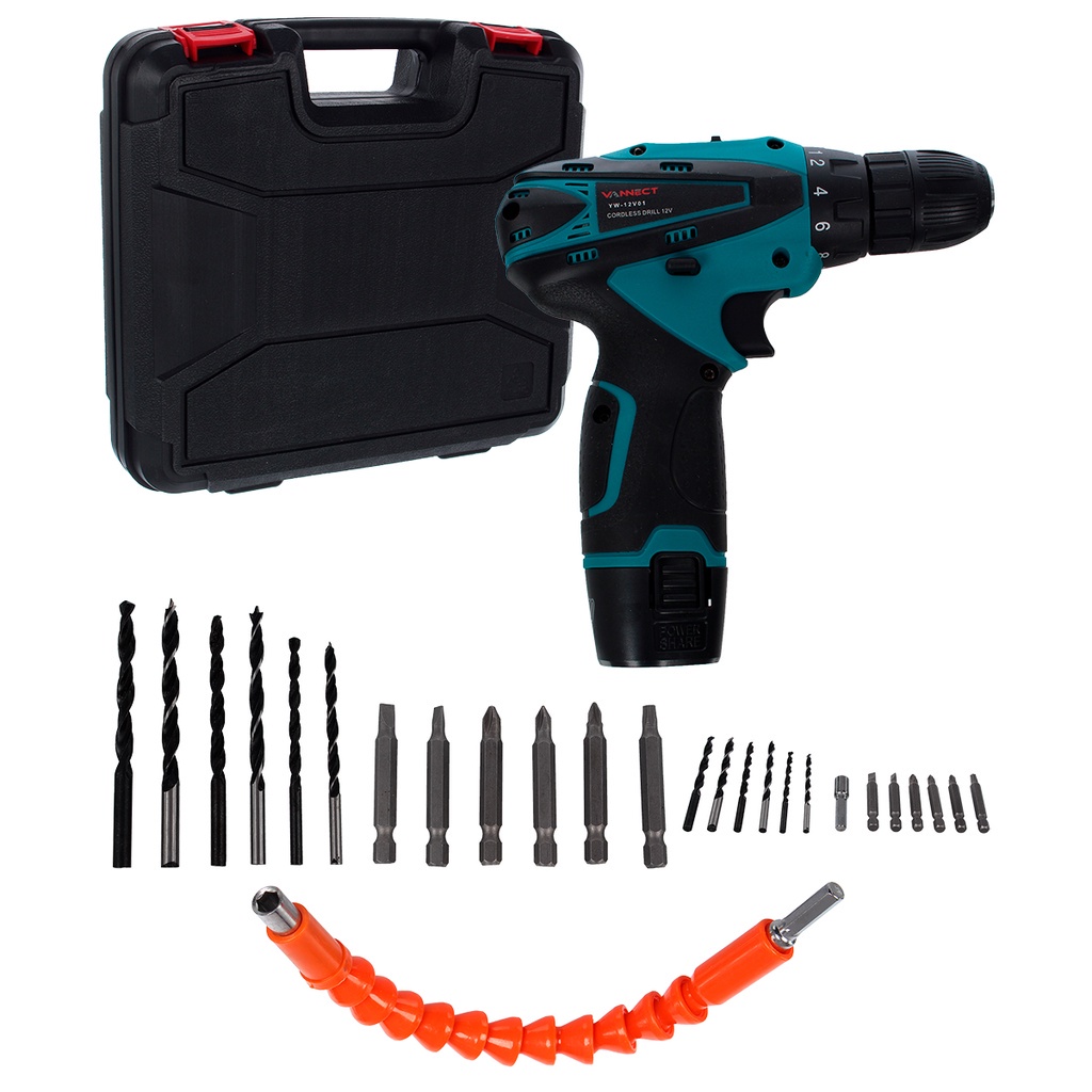 Parafusadeira Furadeira Vannect 1350 RPM Bivolt 2 Baterias A Parafusadeira/Furadeira Vannect é um produto desenvolvido com Tecnologia Americana que traz alta durabilidade e segurança para a prática de diversos tipos de trabalhos. Com sistema reversível, mandril sem chave de 10mm, possui LED de carga da bateria e luz LED para iluminação da área de trabalho. É indicada para aperto e desaperto de parafusos, como também realizar perfurações de forma precisa e com ótimo resultado. CARACTERÍSTICAS TÉCNICAS - Tensão da bateria: 12,0 V - Tipo de bateria: bateria de íons de lítio - Capacidade do mandril: 3/8" - 10 mm - Tipo de mandril: aperto rápido - Capacidade máxima de perfuração: * em aço: 18,0 mm * em madeira: 30,0 mm - Tipo de velocidade: variável - Rotação: 0 - 1350 rpm - Sistema de reversão: reversível - Tensão do carregador de bateria: 100 V~ - 240 V~ - Bivolt automático - Possui regulagem para 18 posições de torque e 1 posição para perfuração, LED para melhor visibilidade do local de trabalho, cabo com revestimento emborrachado, proporcionando maior conforto ao operador, bateria de íons de lítio que confere alta eficiência de operação, indicador de carga da bateria. - Peso aproximado: 1,09kg ACOMPANHA * 01 Maleta * 02 Bateria Íons de Lítio 12V * 01 Carregador bivolt automático * 06 Brocas para madeira (1,5 - 2,5 - 3,0 - 4,0 - 5,0 - 6,0mm) * 06 Bits - 2 fendas (5 e 6mm) - 3 phillips (ph1, ph2 E ph3) - 1 pozidrive ( pz2) * 01 Soquete magnético encaixe de 1/4" *01 Alongador Flexível Motor de alto torque: Em alta velocidade: 24nm Em baixa velocidade: 21nm Autonomia de 70 horas contínuas Duas velocidades modo furadeira: 1350rpm Modo parafusadeira: 500rpm GARANTIA: 6 MESES