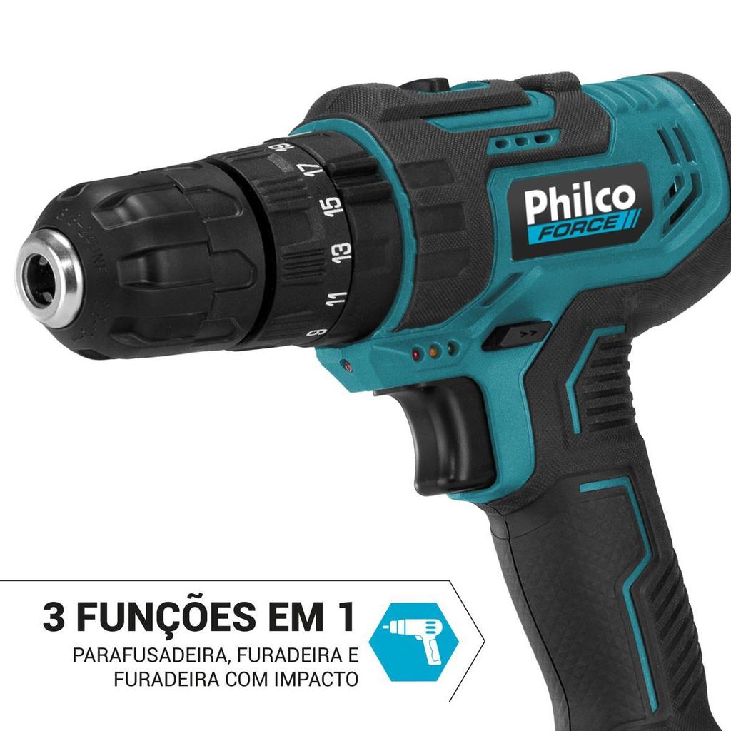 Parafusadeira Philco PPF21M Maleta + Fenda e Philips 21V