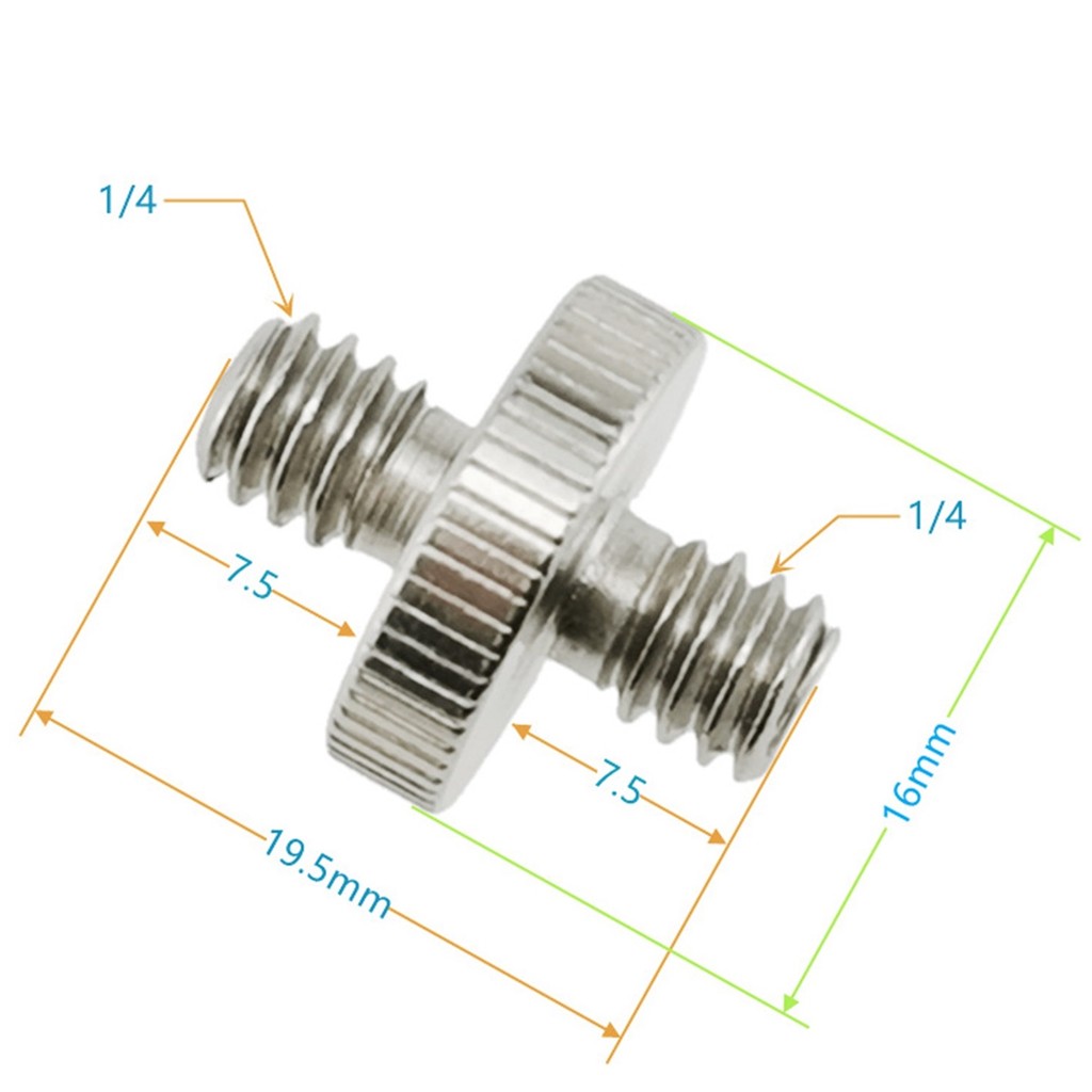 PRODUTO A PRONTA ENTREGA ENVIO EM ATÉ 24HRS O parafuso duplo macho/macho 1/4" é um adaptador muito útil em equipamentos audiovisuais, pois permite conectar dispositivos que possuem roscas fêmeas. Utilizado para conectar diferentes componentes como câmeras, filmadoras, gravadores de áudio, ring lights, tripés de iluminação e iluminadores LED. Material: Aço Cor: Prata Comprimento: 19.5mm Largura: 16mm Quantidade: 1 Parafuso Duplo Macho 1/4 - 1/4
