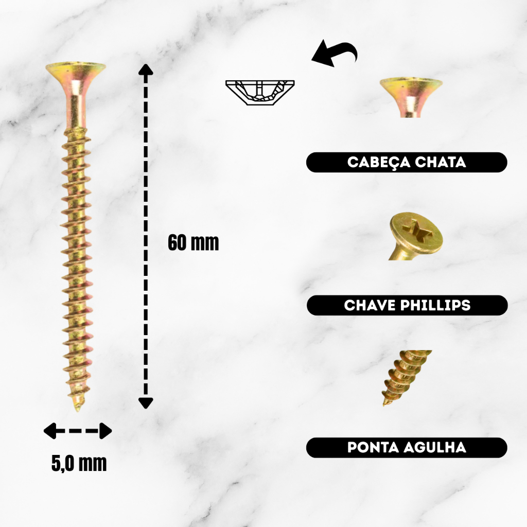 Parafuso Chip Phillips Para Madeira 5,0x60 - Caixa Com 200 Peças