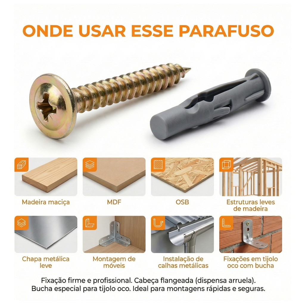 O Parafuso Chipboard Flangeado 4,5x40 Bucha 6mm Bloco é a solução ideal para quem busca fixação firme e profissional. Com uma cabeça flangeada e um sistema de aperto Phillips, este parafuso é projetado para garantir uma instalação segura em diversas superfícies, como MDF, madeira maciça, OSB e tijolo oco. Fabricado em aço bicromatizado, o parafuso oferece resistência e durabilidade, tornando-o perfeito para montagem de móveis e instalação de calhas metálicas. Sua ponta afiada permite uma penetração fácil, facilitando o trabalho em estruturas leves de madeira e chapas metálicas leves. Com um comprimento de 4 cm e diâmetro de 4,5 mm, este modelo é versátil e atende a diferentes necessidades de fixação. Ideal para profissionais e entusiastas do DIY, o Parafuso Chipboard Flangeado é a escolha certa para quem valoriza qualidade e eficiência em seus projetos.