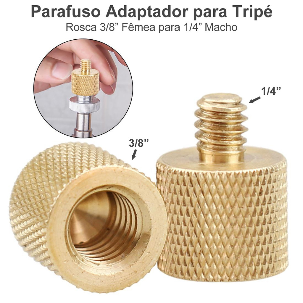Parafuso Conversor Adaptador Fêmea 3/8 x Macho 1/4 em Alumínio