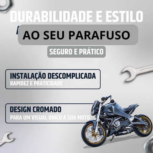 Parafuso da Aba do Tanque Polido para NX Bros 125/150: Detalhes que Elevam o Estilo da Sua Moto!Dê um toque de elegância e sofisticação à sua NX Bros 125/150 com o Parafuso da Aba do Tanque Polido. Estes parafusos não apenas proporcionam um visual mais refinado, mas também garantem uma fixação segura do tanque, adicionando um elemento de estilo à sua moto.Elegância em Cada Detalhe: Fabricados com materiais de alta qualidade e um acabamento polido brilhante, estes parafusos são projetados para destacar a beleza da sua NX Bros 125/150, conferindo-lhe um visual sofisticado e elegante.Compatibilidade Garantida: Desenvolvidos especificamente para os modelos NX Bros 125/150, esses parafusos oferecem compatibilidade perfeita, garantindo uma instalação simples e sem complicações.Durabilidade e Resistência: Com sua construção robusta e materiais de alta qualidade, esses parafusos são projetados para suportar as condições adversas da estrada, garantindo durabilidade e resistência ao longo do tempo.Instalação Simples: A instalação desses parafusos é rápida e fácil, permitindo que você os substitua facilmente em casa, sem a necessidade de habilidades mecânicas avançadas. Siga as instruções fornecidas para uma instalação correta e segura.Estilo Personalizado: Além de proporcionar uma fixação segura do tanque, esses parafusos acrescentam um toque personalizado à sua NX Bros 125/150, permitindo que você demonstre seu estilo único e se destaque na estrada.Renove o Visual da Sua Moto: Adquira agora o Parafuso da Aba do Tanque Polido para NX Bros 125/150 e eleve o estilo da sua moto para um novo patamar. Com esses parafusos, sua moto se destacará com elegância em qualquer ambiente.Não perca tempo! Adquira já os seus parafusos e transforme o visual da sua NX Bros 125/150 com sofisticação e estilo!