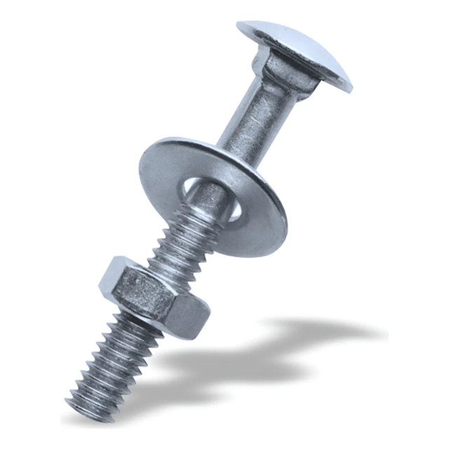 KIT PARAFUSO FRANCÊS COM PORCA E ARRUELA 100 Peças de parafuso Francês 1/4X3 zincado branco 100 Peças de porca sextavada 1/4 zincada branco 100 peças de arruela 1/4 zincada branco Especificações Técnicas Descrição do desenho Técnico segunda imagem do anuncio: ( D ) Diâmetro da cabeça= 15,08mm ( d ) Diâmetro = 6,35mm ( h ) Altura da Cabeça Máx. = 3,68mm ( K ) Altura do quadrado = 3,96mm ( v ) Largura do quadrado = 6,60mm ( L ) Comprimento = 76,20mm Fios por Polegada: FPP-20 Chave de Aperto: 7/16 ou 12mm Cabeça: Abaulada Rosca: UNC-20 Ponta do Parafuso: Reta Acabamento: Zincado Branco (Banho de zinco para maior resistência a oxidação e melhor acabamento) Material: Aço Carbono APLICAÇÃO: Utilizado em diversas aplicações no seguimento agrícola e em maquinas de forma geral.