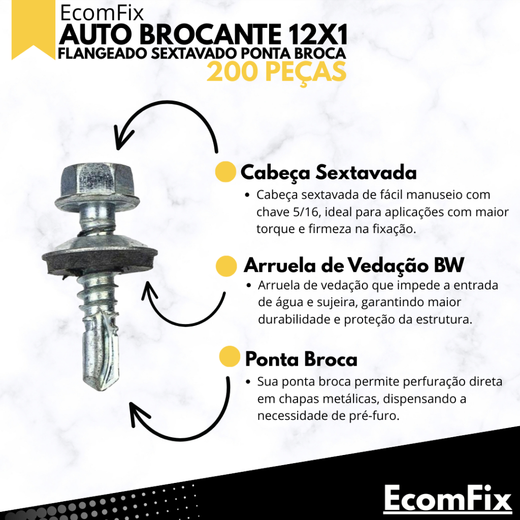 | Parafuso Para Telha Auto Brocante Sextavado 5,5x25mm (12x1) 200 Peç... este produto | R$ 38,71 | 10% | 4.8/5 | 55 |
