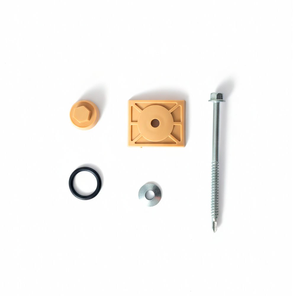 1 Pacote com 40un de Fixação e Vedação – Tamanho: 5.5x62mm Usado para Telhas Modelo Colonial Acompanha 40 Parafusos Brocantes e 40 Conjuntos de Vedação. Parafuso Brocante de 62mm comprimento, Serve para Madeira / Metal / PVC Material de qualidade e reforçado. Os kits contêm anéis de PVC, capa de proteção contra a infiltração da água, parafusos autobrocantes e hastes. Recomendamos altamente a utilização deste kit, a fim de garantir a boa funcionalidade e durabilidade das telhas. IMAGEM ILUSTRATIVA