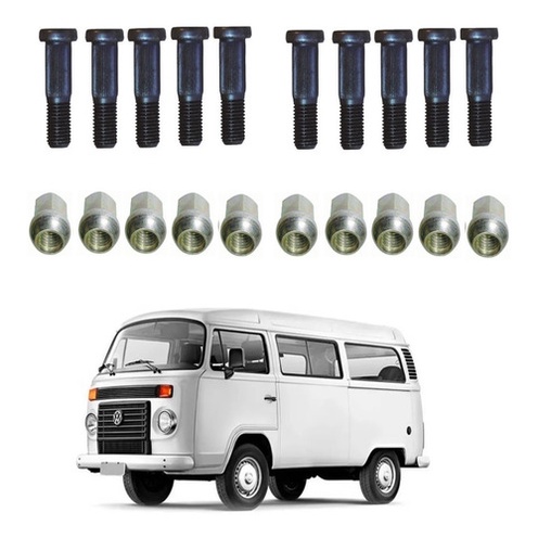 Parafuso + Porca (kit C/10) Roda Dianteira Kombi Clipper 82/