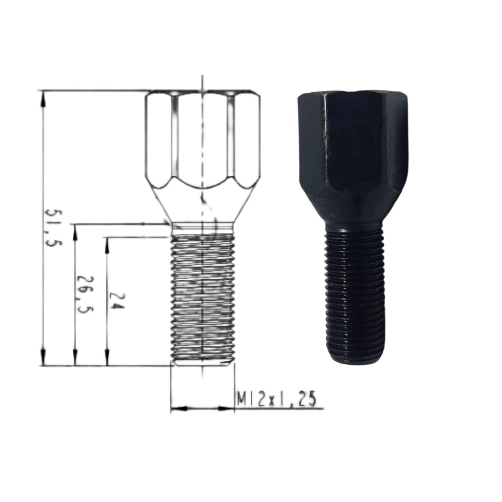 Parafuso Preto de Roda Dianteiro e Traseiro M12x1,25 x 26,5/51,5 Chave 19 - ZM Aplicação: FIAT: 147 Brava Elba Fiorino Idea Marea Palio Palio Weekend prêmio Siena Strada Uno Medidas: ROSCA: M12 x 1,25mm COMPRIMENTO Rosca: 26,5mm COMPRIMENTO TOTAL: 51,5mm CHAVE: 19mm RESISTÊNCIA MECÂNICA: 8.8 ACABAMENTO: Enegrecido / Blackened Contém: 1-Parafuso Marca: ZM SOBRE O ACABAMENTO BLACKENED (ENEGRECIDO) Os parafusos possuem acabamento Blackened (enegrecido), que proporciona: Visual discreto e esportivo Proteção superficial contra oxidação Maior resistência ao desgaste Importante: O acabamento enegrecido é um tratamento superficial. Em casos de: Uso em regiões litorâneas (maresia) Lavagens com produtos ácidos Uso de parafusadeira de impacto Danos na camada externa durante instalação Pode ocorrer oxidação superficial, sem comprometer a resistência estrutural da peça RECOMENDAÇÃO DE INSTALAÇÃO Utilizar torque conforme especificação do veículo Evitar parafusadeira de impacto Recomendado reaperto após 50 km Aplicar protetivo anticorrosivo em regiões úmidas Produto com acabamento esportivo. A garantia cobre defeitos de fabricação, não cobre oxidação causada por agentes externos ou instalação inadequada.