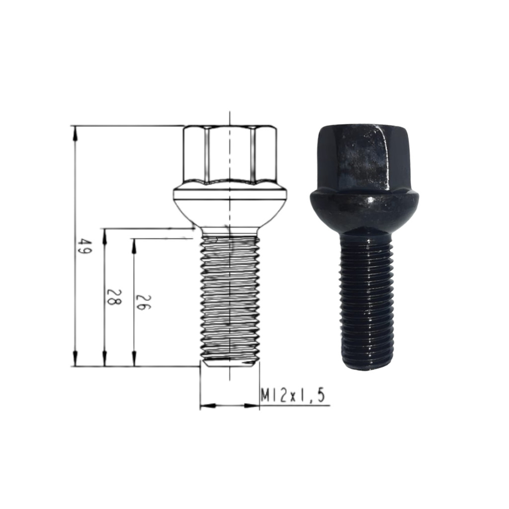 Parafuso de Roda - DIA/TRA M12-1,5 x 28 / 49 CH/SW 17 Aplicação: Volkswagen Gol Voyage Parati Saveiro Passat Santana Quantum Todos os modelos com roda de ferro (G1 G2 G3 G4 G5 G6) Medidas: Rosca M12 x 1,5mm Comprimento Rosca: 28mm Comprimento Total: 49mm Chave: 17mm Resistência Mecânica: 8.8 Acabamento: Enegrecido / Blackened Marca: ZM Contém: 1-Parafuso SOBRE O ACABAMENTO BLACKENED (ENEGRECIDO) Os parafusos possuem acabamento Blackened (enegrecido), que proporciona: Visual discreto e esportivo Proteção superficial contra oxidação Maior resistência ao desgaste Importante: O acabamento enegrecido é um tratamento superficial. Em casos de: Uso em regiões litorâneas (maresia) Lavagens com produtos ácidos Uso de parafusadeira de impacto Danos na camada externa durante instalação Pode ocorrer oxidação superficial, sem comprometer a resistência estrutural da peça RECOMENDAÇÃO DE INSTALAÇÃO Utilizar torque conforme especificação do veículo Evitar parafusadeira de impacto Recomendado reaperto após 50 km Aplicar protetivo anticorrosivo em regiões úmidas Produto com acabamento esportivo. A garantia cobre defeitos de fabricação, não cobre oxidação causada por agentes externos ou instalação inadequada.