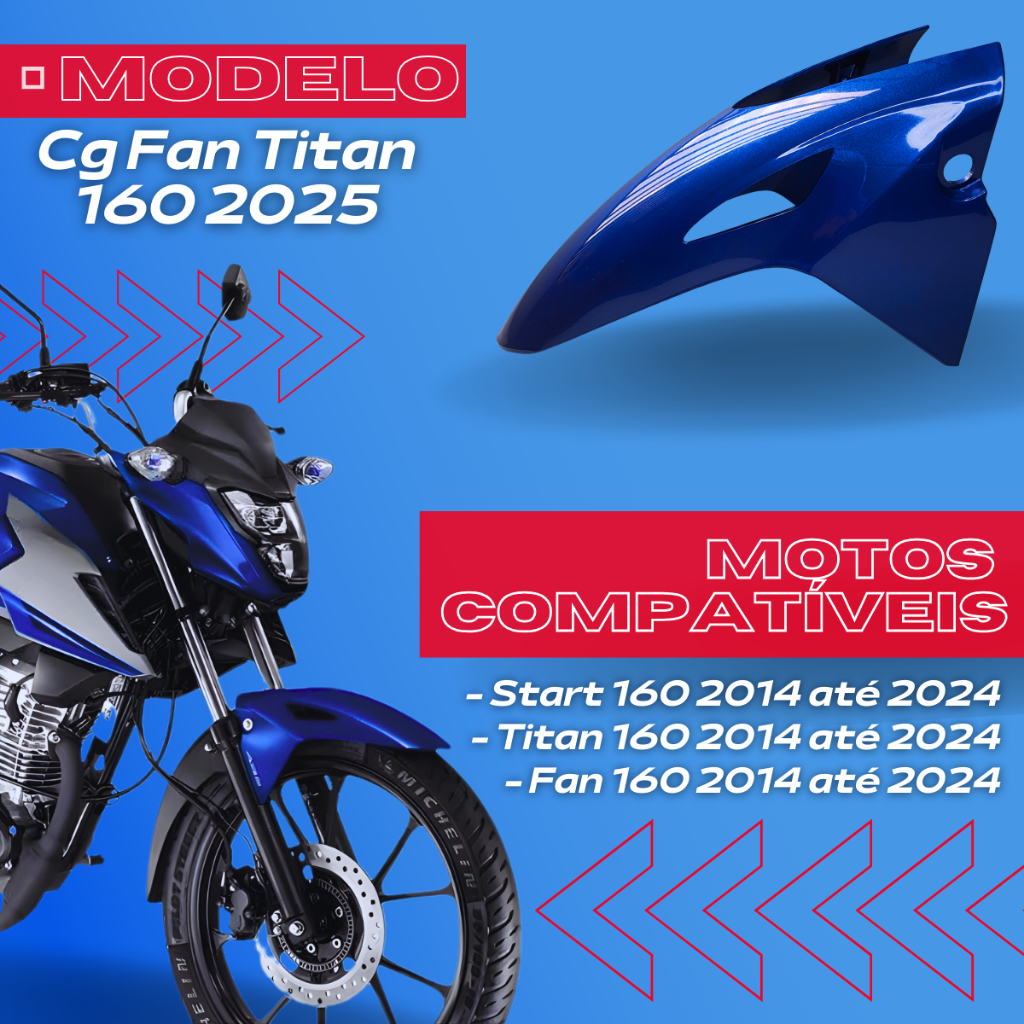 Paralama Dianteiro MODELO CG 160 2025 - COMPATÍVEL COM CG Titan 2014 A 2024 / Fan / Start 2025 – Todas as cores MARCA: PLASMOTO Motos compatíveis: - Start 160 2014 até 2024 - Titan 160 2014 até 2024 - Fan 160 2014 até 2024 Itens inclusos: Conteúdo: 1 x Bico Paralama Parte A 1 x Paralama Parte B 1 x Kit Completo Ferragens PINTURA IDÊNTICA AO DO ORIGINAL, TOM IDÊNTICO Fabricado em material de alta resistência, oferece excelente durabilidade e proteção contra respingos, lama e detritos, mantendo sua moto protegida e com aparência sempre nova. Perfeito tanto para reposição do original quanto para personalização. Cores disponíveis: Azul Twister Perolizado Vermelho Marrakesh Perolizado Branco Andes Perolizado Cinza Una Metálico Cinza Tornado Azul Cruzeiro Perolizado Vermelho Guarau Prata Ibiuna Vermelho Maceió Amarelo Caju Perolizado Azul Caraiva Perolizado Branco Ross Azul Spencer Perolizado Vermelho Pimenta Perolizado Prata Iron Nail Metálico Cinza Embaré Com pintura resistente, visual esportivo e encaixe preciso, este paralama é o upgrade que a sua CG 160 merece.