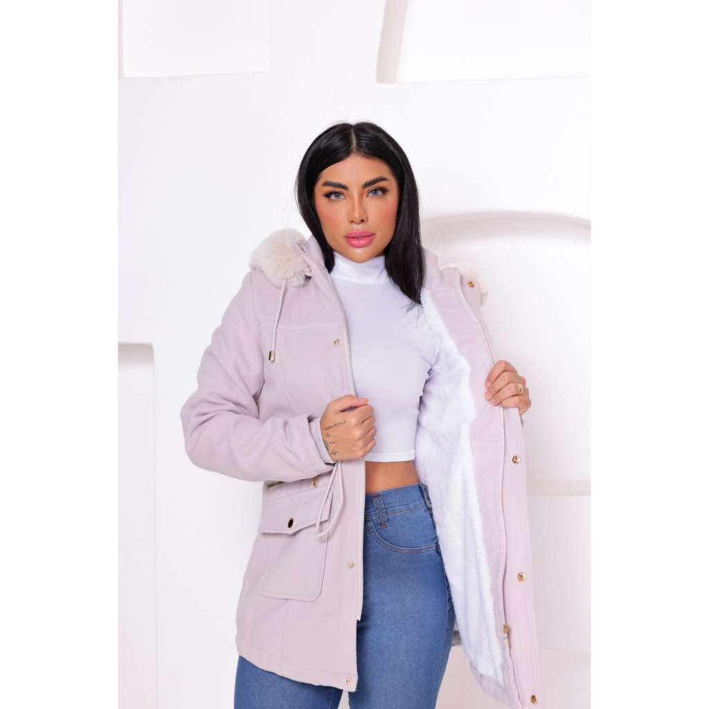 | parka feminina de lã batida toda peluciada por dentro com capuz rem... este produto | R$ 176,00 | 12% | 4.9/5 | 1 |