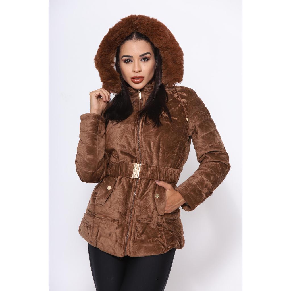 parka feminina de tecido Suede toda peluciada por dentro com capuz removível vários cores