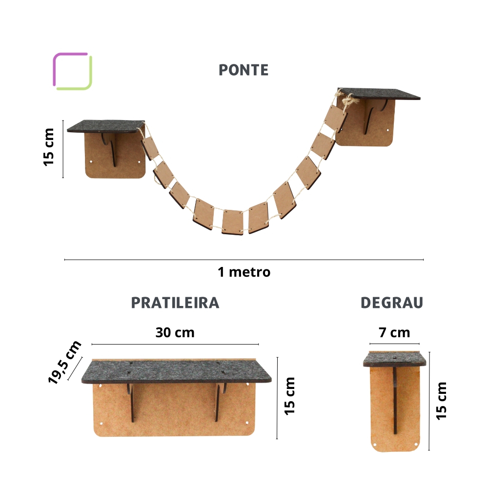 Parquinho de Gatos Kit 9 peças em MDF Nicho Arranhador Rede