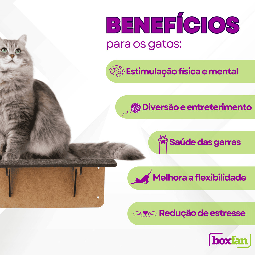 Transforme a Rotina do Seu Gato com o Playground 7 Peças + Ebook 😻 Diversão, conforto e bem-estar em um só lugar — porque seu gato merece muito mais que o básico. Se você ama seu gato como parte da família, sabe o quanto é importante oferecer um ambiente estimulante e acolhedor. O Playground para Gatos - 7 Peças é a solução ideal para enriquecer o dia a dia do seu felino com aventuras, conforto e muita diversão! O Que Vem no Kit: • 2 Ponte Suspensa (50 cm) – Diversão garantida com escaladas e equilíbrio. • 1 Prateleira (30x15 cm) – O ponto perfeito para descansar e observar o território. • 4 Degraus (10x7 cm) – Acesso fácil e seguro aos módulos superiores. Por Que Seu Gato Vai Amar: • Estimula o instinto natural de escalar, caçar e explorar. • Reduz o estresse e evita o tédio. • Melhora o comportamento e o bem-estar geral do seu gato. • Design moderno que combina com qualquer decoração. • Fácil de instalar — acompanha manual explicativo. - SUPORTA ATÉ 5KG SE INSTALADO CORRETAMENTE; Montagem Descomplicada O Playground é enviado desmontado e você só precisa de parafusos e buchas para fixá-lo (não inclusos). Em poucos passos, seu gato já estará se divertindo! Envio Rápido para Todo o Brasil! Comprou, chegou. Despachamos seu pedido com agilidade para que seu felino não precise esperar para se apaixonar pelo novo cantinho favorito da casa. Dúvidas? Fale com a Gente! Nosso atendimento está pronto para ajudar antes, durante e depois da sua compra. Dê Esse Presente ao Seu Gato Hoje Mesmo!