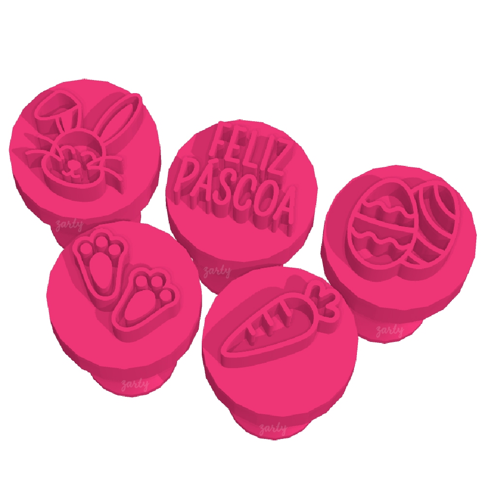 Páscoa - Carimbos para Brigadeiros e Docinhos - Kit com 5 unidades - Chocolate, Coelho, Cenoura