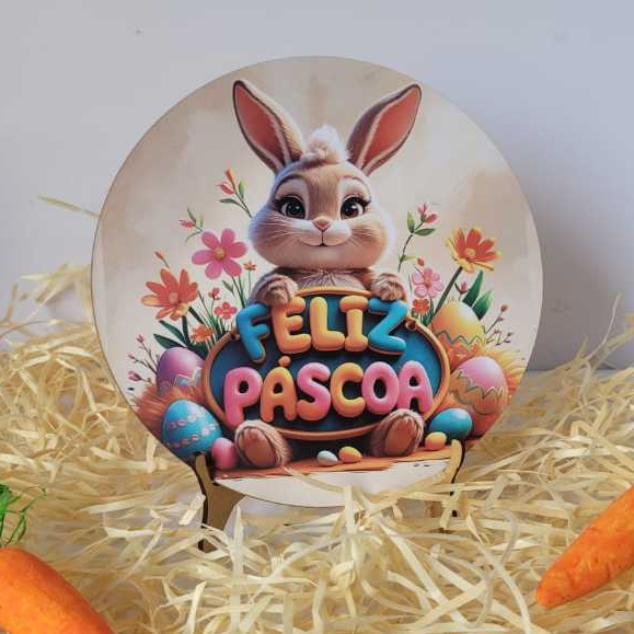 Páscoa decoração quadrinho com suporte para mesa em MDF com 20cm coelho coelhinhos
