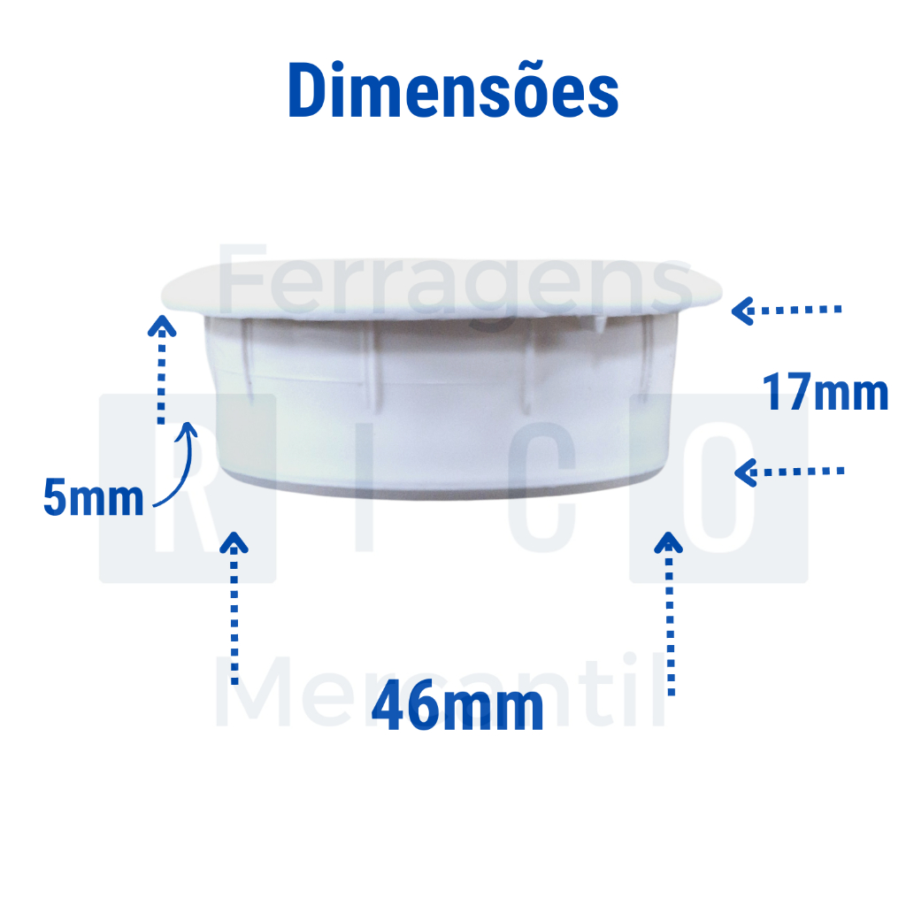---Rico Ferragens --- Seja bem vindo ! O acabamento Passa Fio / Passa Cabo é fundamental para a organização da fiação em mesas de escritório, computadores, home theater, racks, criados, nichos de fornos na cozinha, etc. Com ele é possível deixar o ambiente mais agradável e "limpo", já que tudo fica bem arrumado. Material Plastico PVC Tampa superior com encaixe Diametro do furo - 46mm Profundidade abaixo da aba - 17mm Aba Lateral - 5mm Kit com 1 peças - Preto e Branco - escolha a cor no anúncio Como trabalhamos : -Aceitamos todas as formas de pagamento - Todos os nossos itens comercializados são novos, originais, com garantia e Nota Fiscal - Os produtos aqui oferecidos estão disponíveis fisicamente em nosso estoque próprio - Postagem em até 24 horas úteis após a confirmação do pagamento - Os preços praticados aqui são exclusivos para vendas online É um prazer atendê-lo !!!! -------------------------Aguardamos o seu pedido !! -------------------------