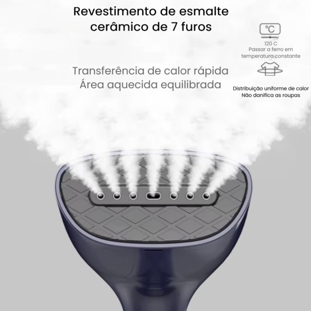 Passadeira a Vapor Portátil Painel Cerâmico 1500W 110V 220V Aquecimento Rápido 7 Furos