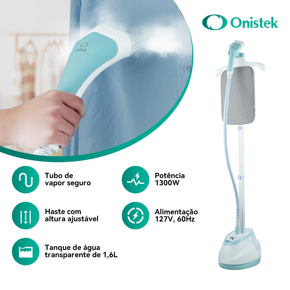 Passadeira a Vapor Com tábua de passar roupa Onistek ON-PR901 combina alta potência, praticidade e eficiência para oferecer um desempenho superior na remoção de rugas e vincos em diversos tipos de tecidos. Aparência impecável em minutos: Steamer de Parede Profissional para Facilidades Facilidades e Eficiência sem Compromissos Encare-se rápida e fácil com o Steamer de Parede de 1300W/1800W. Seu poderoso vapor (32-35g/min) elimina os vincos mais difíceis, economizando tempo e energia. Precisão para Todos os Tecidos Com 10 modos ajustáveis, ele se adapta a camisas delicadas, jeans pesados e tudo o que estiver entre. A temperatura ideal de 98°C preserva as fibras sem danos. cuidado completo das roupas. Seu tanque de água com capacidade de 1,6L garante maior autonomia durante o uso, reduzindo a necessidade de reabastecimento. Facilidades Exclusivas para Calças O varal com grampo para calças mantém peças compridas lisas e sem amassamentos, evitando dobras desajeitadas. Potência e Segurança Disponível nas versões 127V Potêcia 1300W e 220V Potêcia 1800W,adapta-se às diferentes necessidades do usuário. seu design robusto garante desempenho consistente com segurança. ️ Experiência Profissional na Sua Casa Domine a arte da estilização com resultados de salão. Ideal para quem valoriza praticidade e elegância no dia a dia. Modelo: ON-PR901/110V e ON-PR901/220V ESPECIFICAÇÕES: - Modelo: ON-PR901/110V - Potência: 1300W - Vazão de Vapor: 32-35g/min - Voltagem: 127V - 60Hz - Temperatura do Vapor: 98°C - Capacidade do Tanque de Água: 1,6L - Modos de Operação: 10 seleções para diferentes tecidos ESPECIFICAÇÕES: - Modelo: ON-PR901/220V - Potência: 1800W - Vazão de Vapor: 32-35g/min - Voltagem: 220V - 60Hz - Temperatura do Vapor: 98°C - Capacidade do Tanque de Água: 1,6L - Modos de Operação: 10 seleções para diferentes tecidos CONTEÚDO: 1 Passadeira a Vapor Estamos prontos para enviar imediatamente