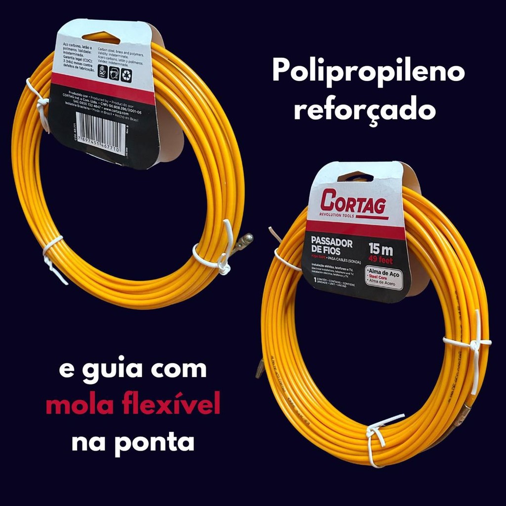 Passador De Fios Alma Aço 15m Cortag............................................................................Sobre o produto............................................................................Indicado para passagem de fios e cabos em instalações elétricas, telefonia e TV.opções em 15m e 10m.....................................................................................................................................DÚVIDAS FREQUENTES.....................................................................................................................................Pergunta: Como é embalado o produto?Resposta: Todos os nossos produtos vendidos são embalados em caixas lacradas ou plástico stretch. Em respeito ao meio ambiente 90% das caixas são reutilizadas.Pergunta: Quem faz a entrega?Resposta: A entrega é terceirizada, feita via CORREIOS ou TRANSPORTADORA.Pergunta: O envio é feito em quantos dias?Resposta: Nós enviamos o seu pedido no prazo máximo de 24 horas após a confirmação de sua compra, sendo um dos envios mais rápidos da plataforma.Pergunta: Os produtos são novos ou usados?Resposta: Todos os produtos que trabalhamos são novos e com qualidade garantida......................................................................................................................................#tela #cavalete #telas #pallet#passafio #cavaletedemadeira #palets#cavaleteparamesa #cabodeaçorevestido #telamangueirão desentupidordecano #tubolit #tecryld3 #reguadealuminio #shampoozeira #brunidordecilindro #tecryl #arameliso1000metros#mordente #passadordefio
