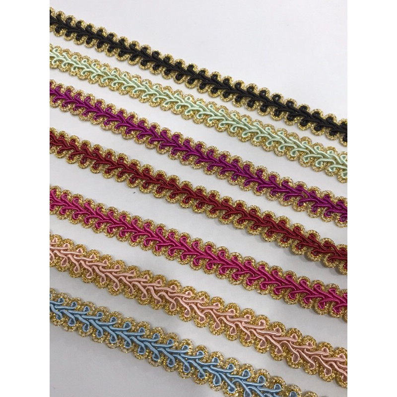 Passamanaria Trançada c/ Borda Dourada Galão Luxo Artesanato Acabamento Aviamento (2 metros)
