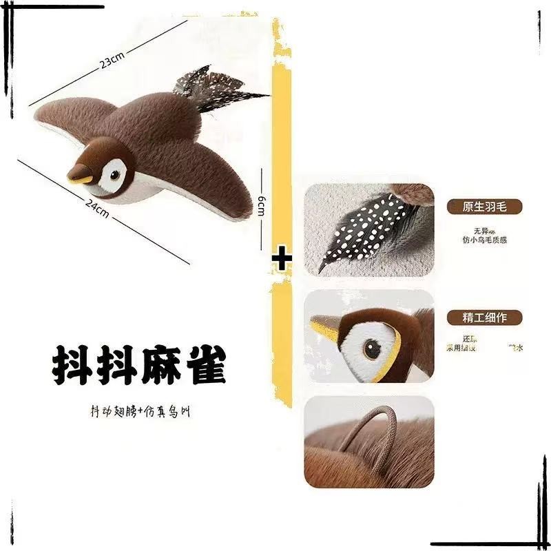 Pássaro de Pelúcia com Som Realista para Gatos Brinquedo Animado Interativo