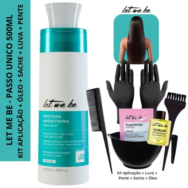Passo Único Let Me Be 500ml + Óleo e Sache + Kit Aplicação Luva e Pente