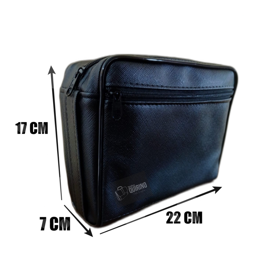 olá seja bem vindo a) Pasta Tradicional simples, fabricada em sintético, material linhado preto de boa qualidade. Tamanho M.Cabe hinário de cordas pequeno e bíblia média. Estamos a 15 anos no mercado de bolsas.. Qualquer duvida estaremos a disposição no chat. Irmãos Quirino.